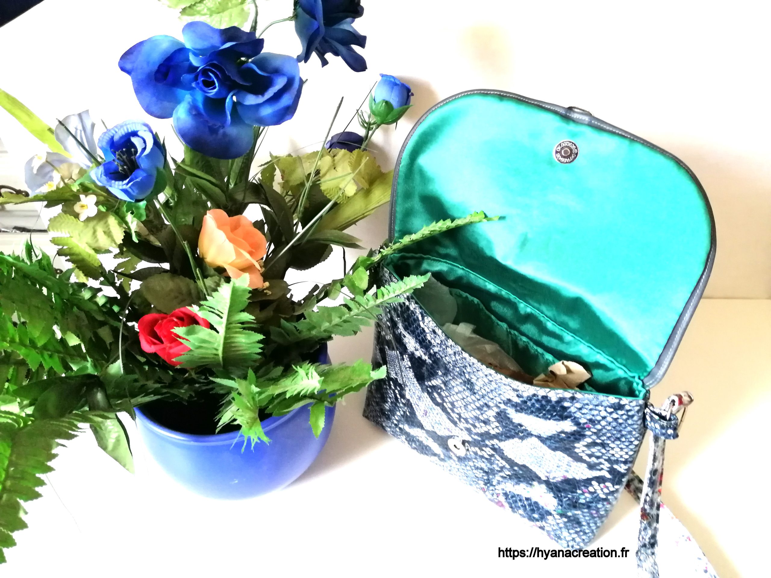 • Matière extérieure : simili bleu chamarré
